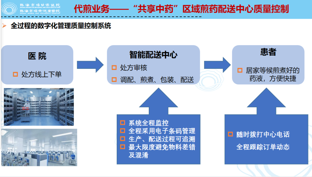 通过优化医院中药服务平台,拓展延伸服务功能,遵循传统煎药工艺,严格控制煎煮流程,珠海市内的患者确保就诊次日,就把煎煮好或调配好的中药送到患者手中。