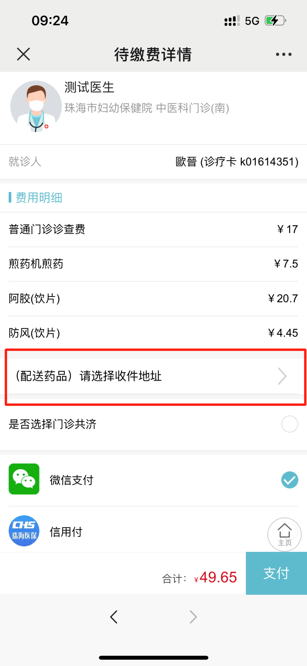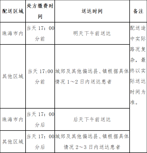注:珠海市内患者免除配送费用,珠海市外由患者自行支付快递费用(到付)