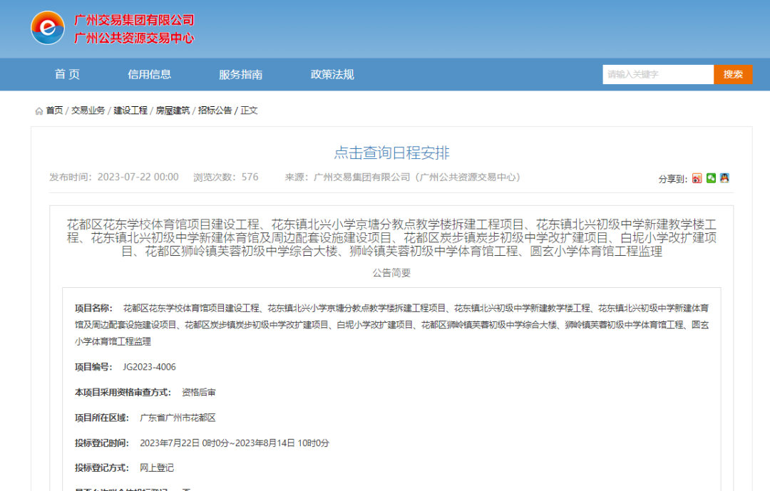 7月下旬,花都区教育局也在广州公共资源交易中心网站发布花都区7所中小学9个项目内容的招标公告。
