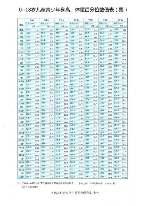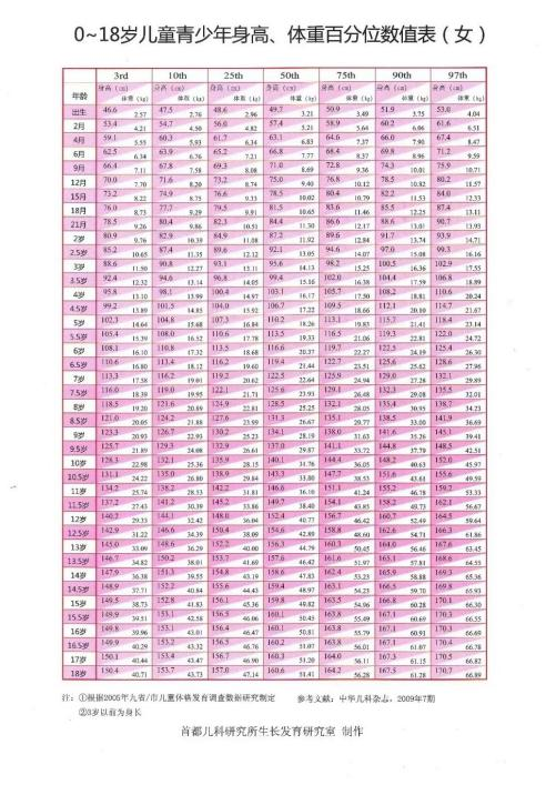 △相应年龄身高百分位数值详见上表(50th为中等值)