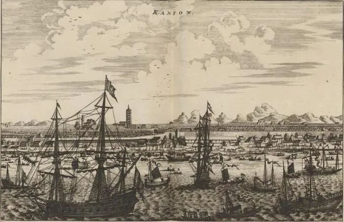 珠江水面帆船密布 [荷]纽荷夫 绘