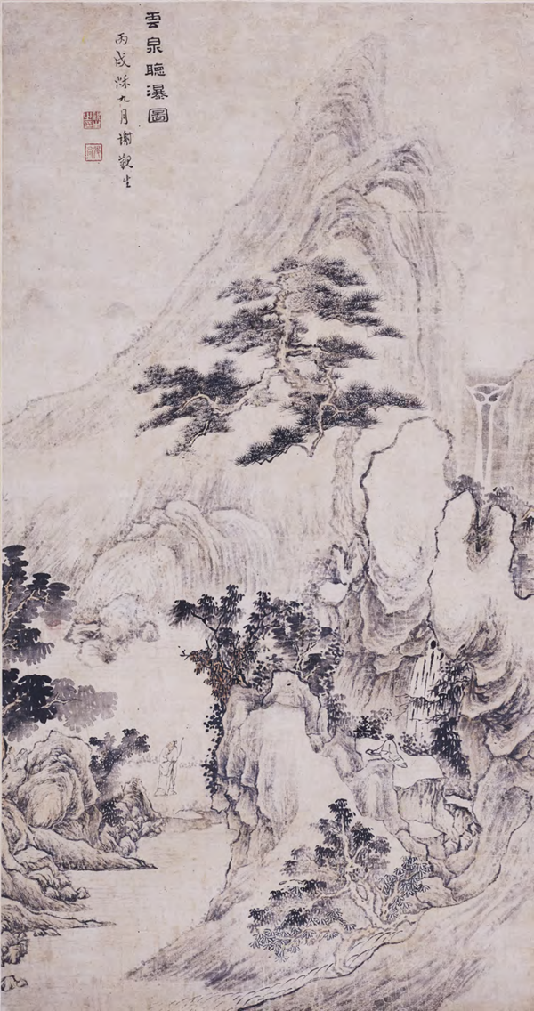 《云泉听瀑图轴》谢观生 绘