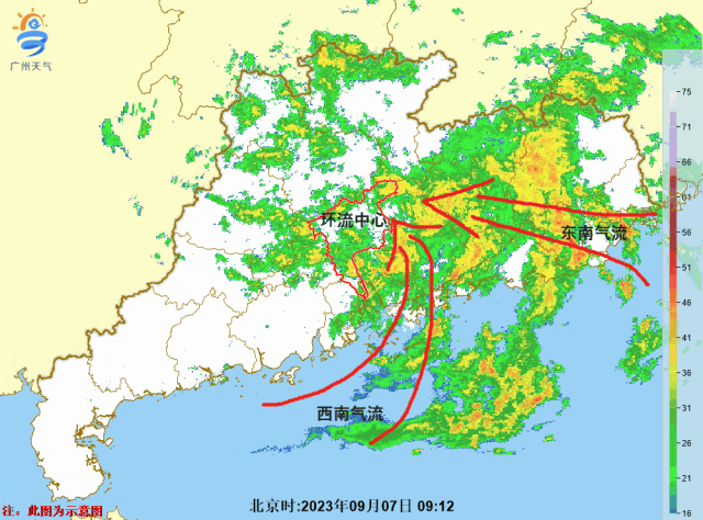 (7日上午,“海葵”残余环流中心位于增城)