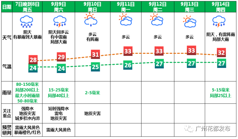 来源:广州日报、广州天气、花都天气