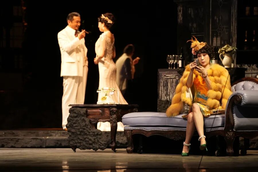 广话版《日出》对顾八奶奶的形象进行了加强,多数《日出》版本中常见的是旗袍造型,这一版中顾八奶奶非常西式“洋范儿”,时尚,夸张。“她和胡四,在剧中是非常跳的,从色彩和人物上,都是很好的点缀。”赵艳说。