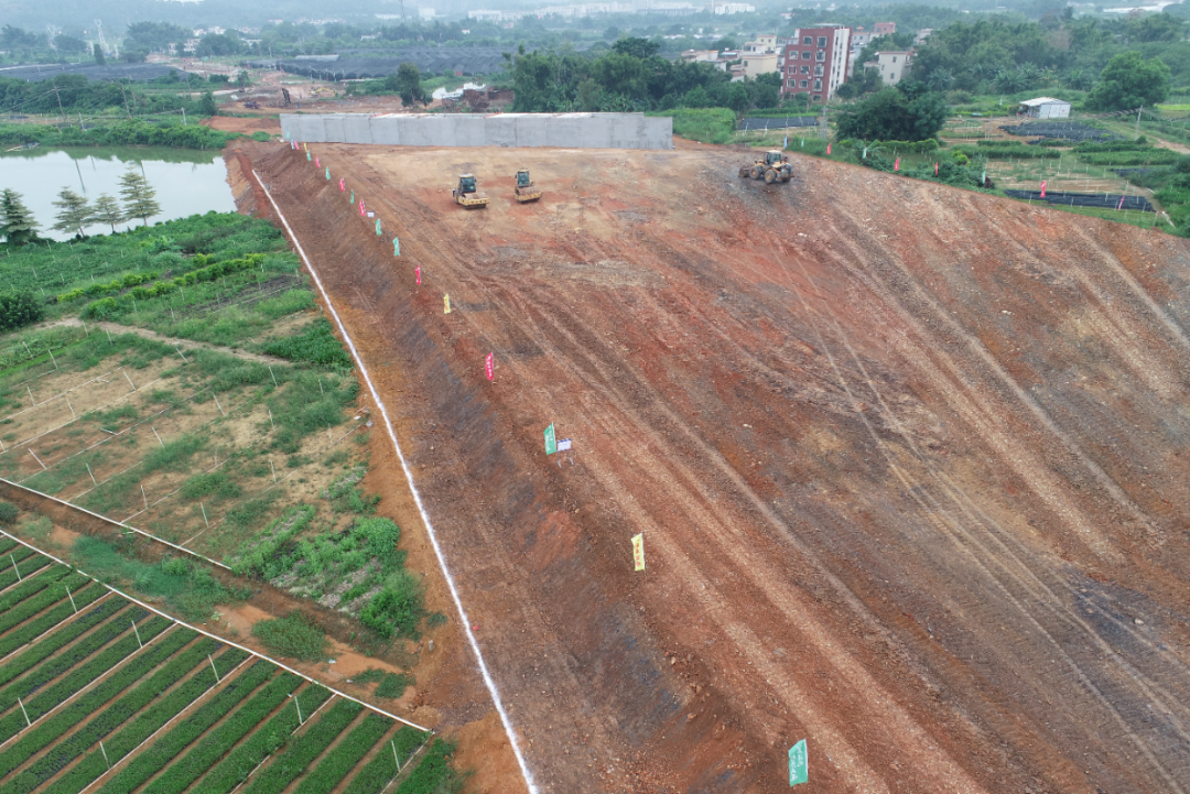 项目施工单位广东冠粤路桥有限公司结合施工范围内先行条件、地质状况和断面形式选取了具有代表性和紧迫性的路基段作为试验段,长度约337米,确定了施工技术、施工工艺、机械组合、碾压遍数、松铺厚度等主要参数,以此作为指导路基工程施工的科学依据。经检测,试验段各项技术指标均符合相关技术规范和设计要求,顺利通过总结验收,为后续大规模进行路基土石方施工奠定了坚实基础。