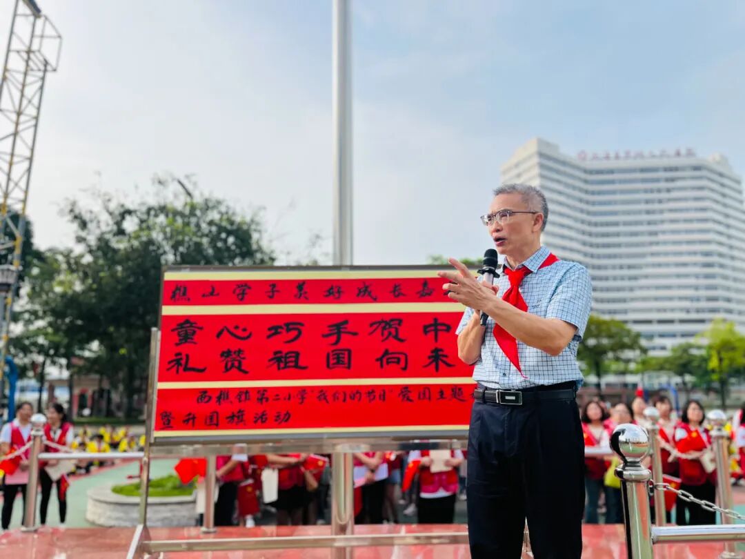 李荣三校长在国旗下作了精彩讲话,勉励孩子们在祖国强大的守护下要自强不息,奋发图强。同时叮嘱全体师生落实好假期安全防护和成长规划。