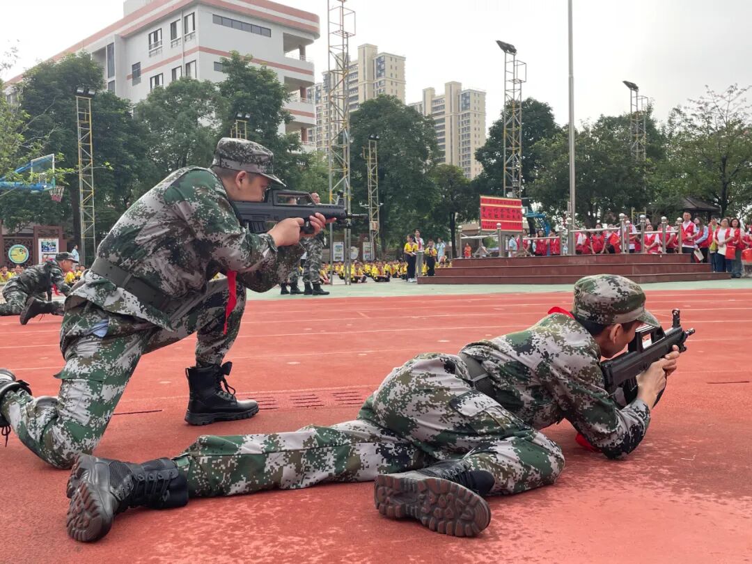永不褪色的军人本色溢满校园!撼动着每一个人!国旗下,军人爸爸们带来了威风飒飒的作战展示,看得孩子们跃跃欲试,一张张稚嫩的脸庞洋溢着朝气、敬佩与向往。