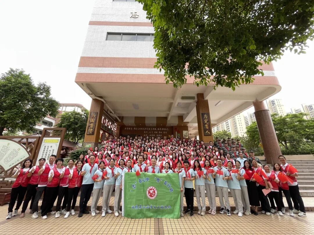 庄严的升旗仪式开始,二小军人爸爸代表用坚定的步伐、坚毅的精神托举着国旗向前迈进,庄严的中华人民共和国国歌响起,全体师生、全体家委肃立,奏唱国歌。