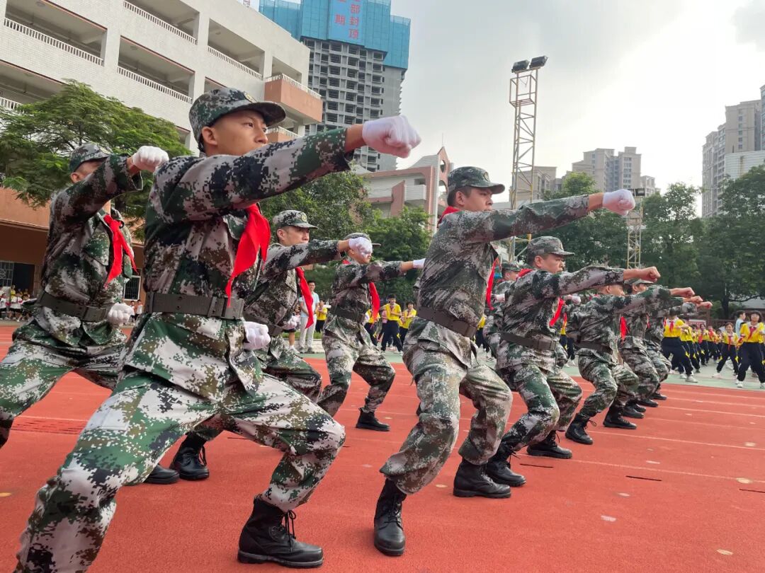 “呼!哈!”……迷彩服下写满了铿锵有力的军人轩昂。军人爸爸们带领全校师生现场学习励志军体拳,把现场气氛推向高潮。