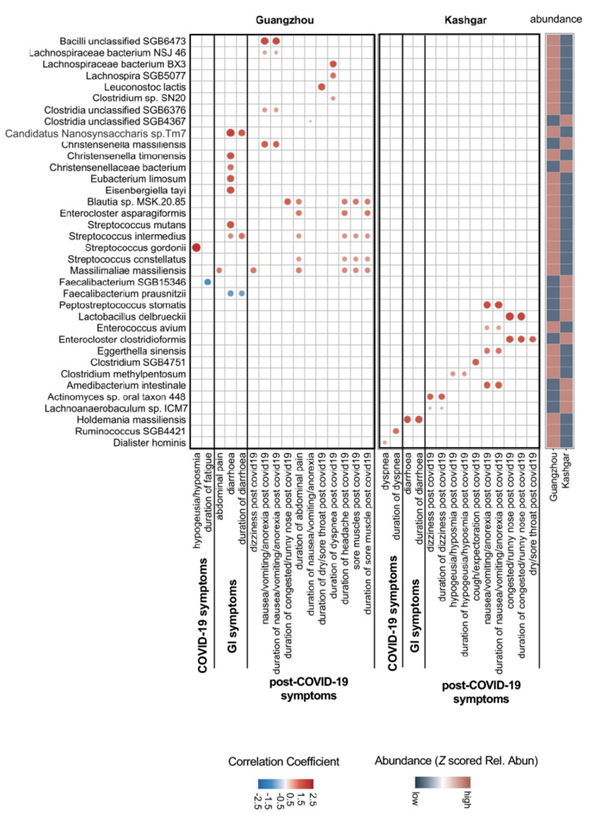 人体基线肠道菌群与感染新冠后症状和新冠后遗症的相关性