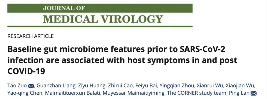 近日,中山大学副校长、我院胃肠病学研究所所长兰平教授和胃肠病学研究所副所长左涛研究员团队于国际病毒学知名杂志Journal of Medical Virology (IF=12.7, Q1) 发表题为“Baseline gut microbiome features prior to SARS-CoV-2 infection are associated with host symptoms in and post COVID-19”的研究文章,文章具体揭示了新冠前基线肠道菌群水平与病毒感染后人体症状表现及后遗症的关联性,有助于进一步探究利用肠道菌群抗病毒感染的可行性。