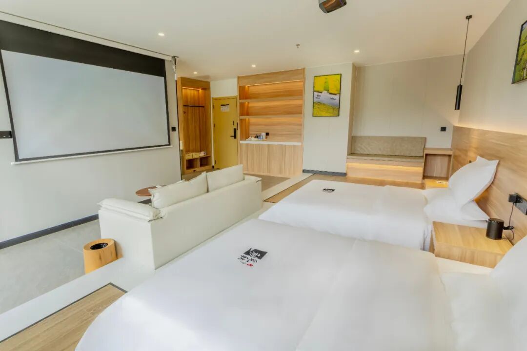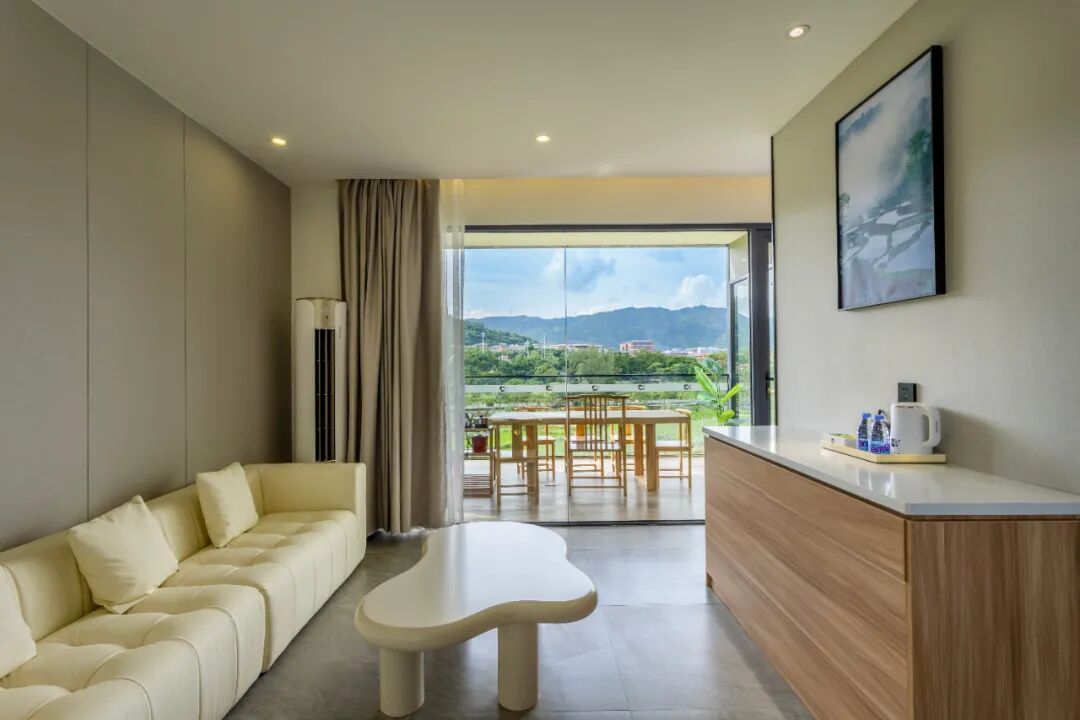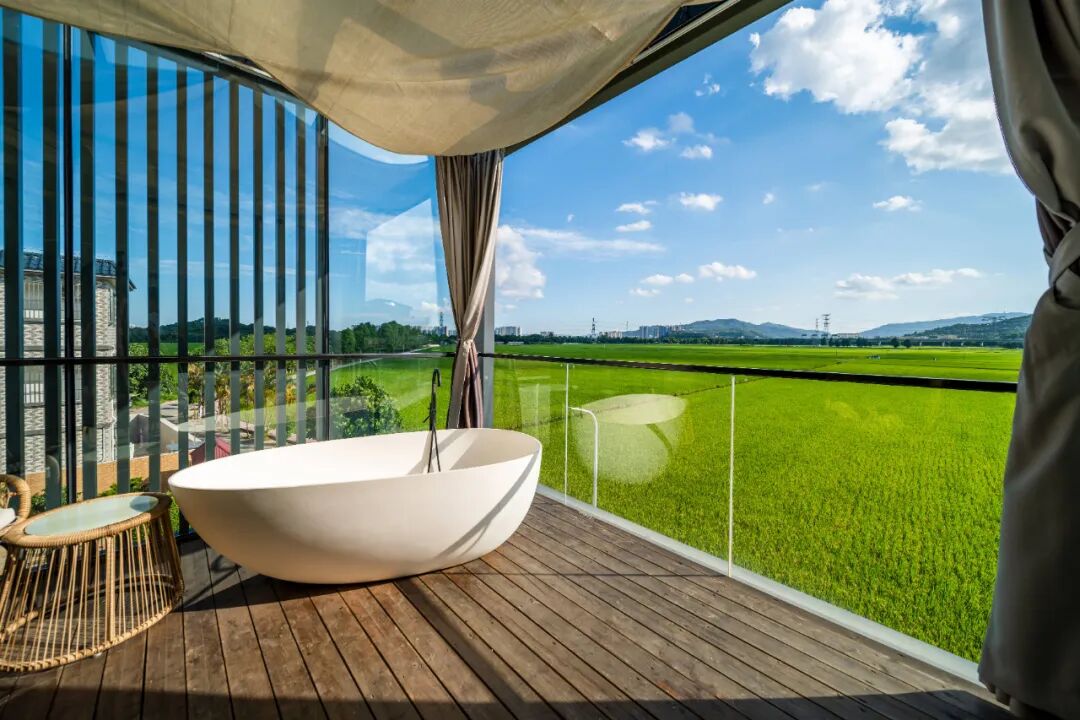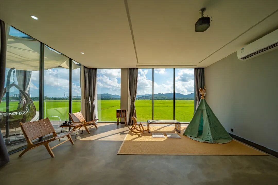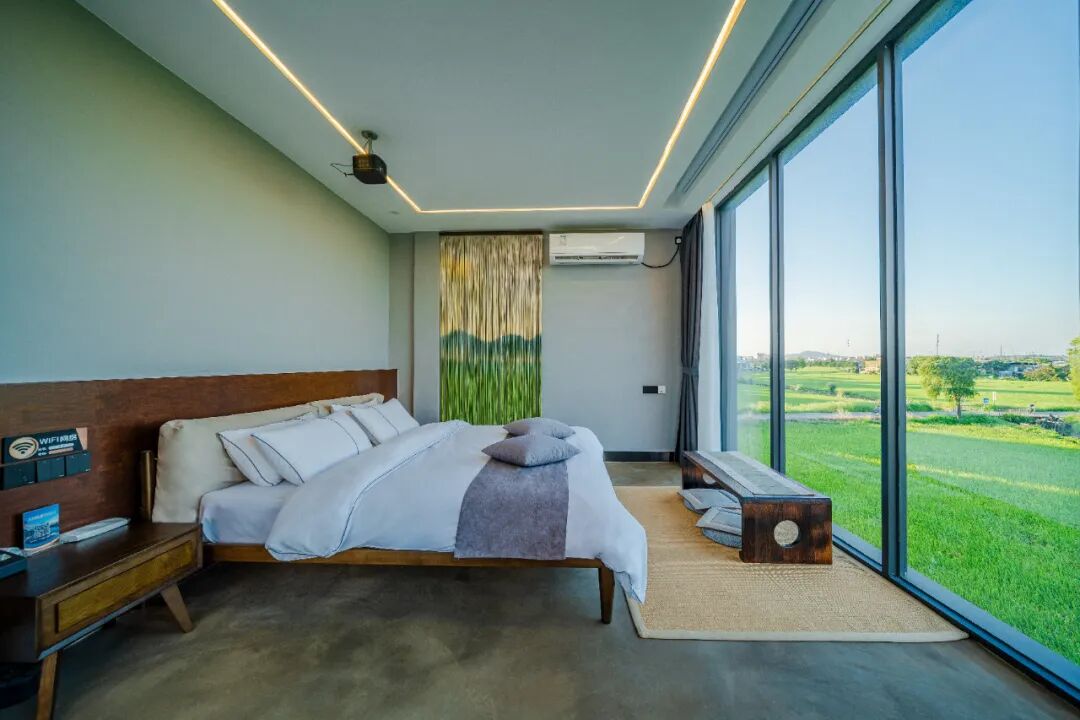 其中6间房更是配备全屋智能设备,可语音控制房间内所有电器,让客人体验最新的智能科技。房间面积32㎡~57㎡,给客人宽敞、舒适的入住体验,每间房都拥有180°全景阳台,稻田风光尽收眼底。