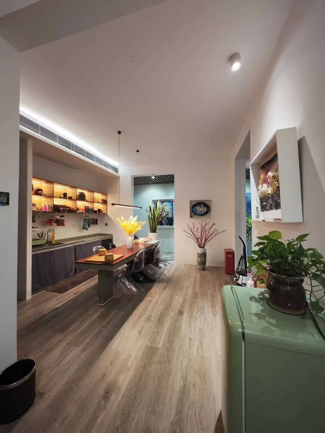 它位于南朗街道翠亨美术馆旁,民宿内含有庭院、水池、落地玻璃休闲区、茶厅、客厅、偏厅,墙壁上挂置有多幅中国·翠亨文化艺术创作基地的艺术家原创作品,可供住客近距离欣赏和品鉴。