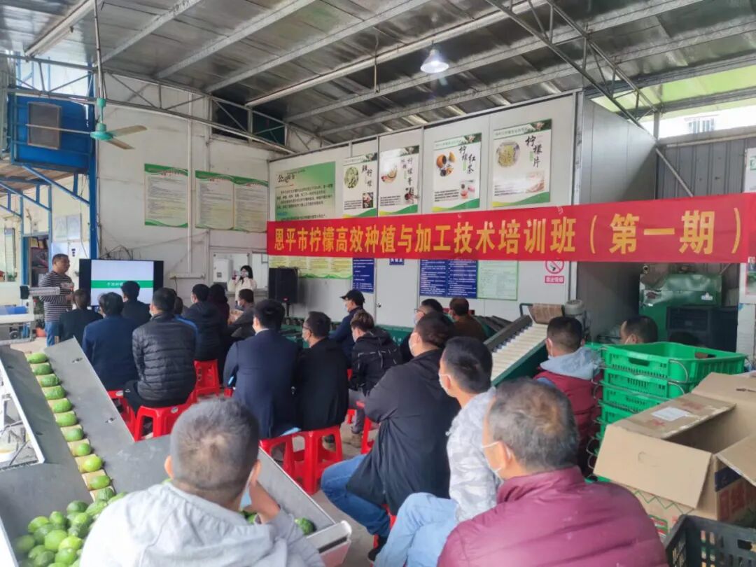 为帮助香水柠檬企业寻找合适的种植用地,恩平市还盘活了200多公顷连片土地,为企业规模化发展提供充足空间,技术支撑上则与仲恺农业工程学院等高校合作共建合作基地,开展柠檬种植、加工技术等主题的培训活动,目前已累计培训7期共300多人次。同时,恩平市组建特色农业科技特派员队伍下乡开展农业技术服务,开设“田间课堂”,目前已实施教育培训8期,培养“田秀才”“新农人”282人。