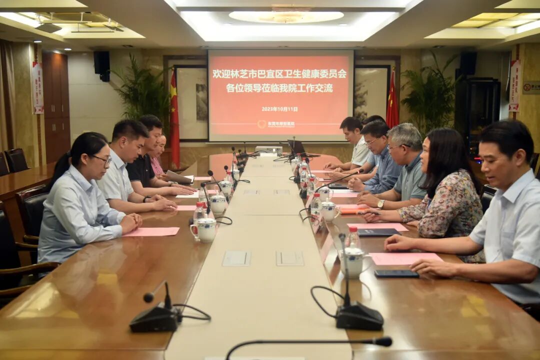 为深化莞藏两地医疗卫生系统的交流合作,进一步促进民族团结、增进民族友谊,10月11日下午,林芝市巴宜区卫生健康委员会主任王晨曦、副主任兼巴宜区人民医院院长翟洁卿莅临我院工作交流。我院院长黄文斌、副院长廖伟强、副院长方建华等领导班子成员、相关职能科室负责人及援藏医生陈建良参加会议。