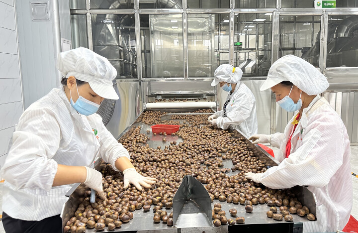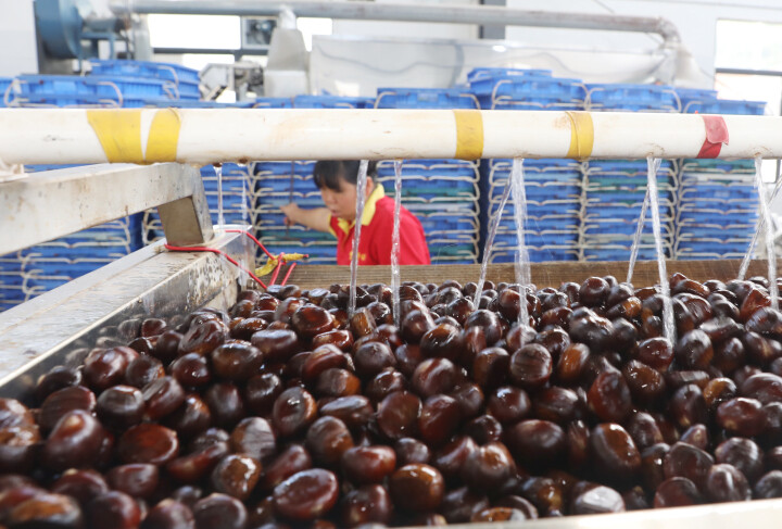 东源县板栗发展有限公司生产车间,粒粒饱满的板栗十分诱人。 肖斌 摄