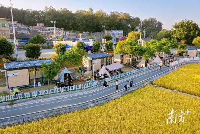 如今,通过长期综合治理,大沙河水库的水质常年保持在Ⅱ类以上。水库边上,大塘面村建起“两山”碧道,一边是碧波荡漾的水库风光,一边是大片农田,每到秋收时节金黄的稻穗摇曳如浪花。在此生态美景的基础上,大塘面村发展起村主街产业、村民市集,打造起江门市级非遗镇濠泥鸡制作体验馆、特色民宿、候鸟露营咖啡、农家乐等项目,带领村民们吃上了“生态饭”,也吸引了不少投资目光。