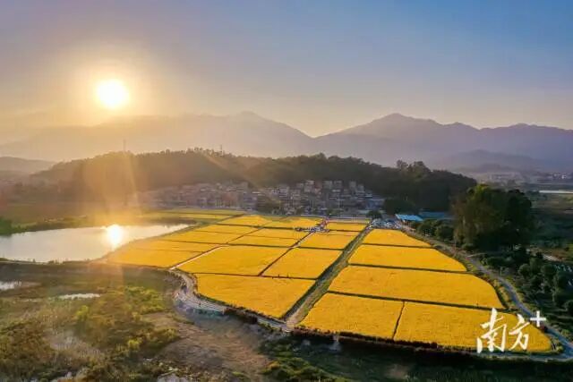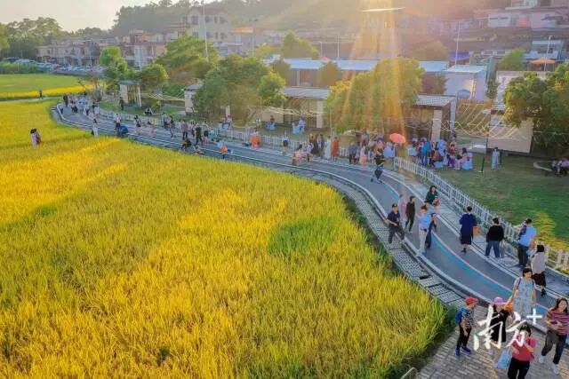 落日余晖下,大沙碧道与大塘面村遥相呼应。
