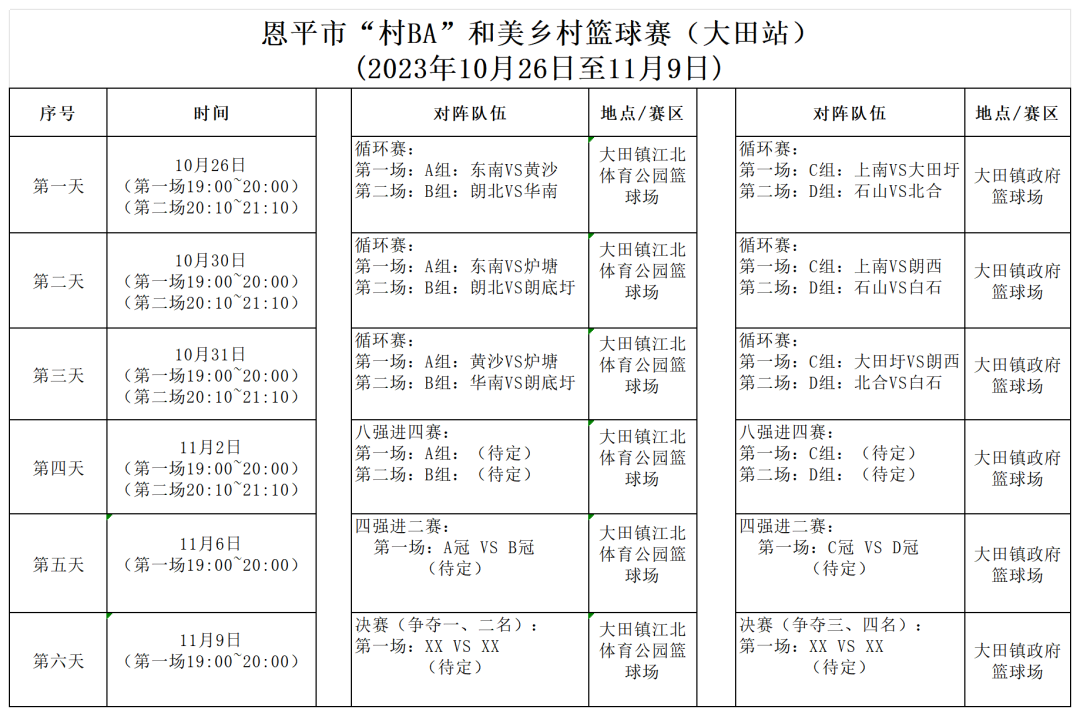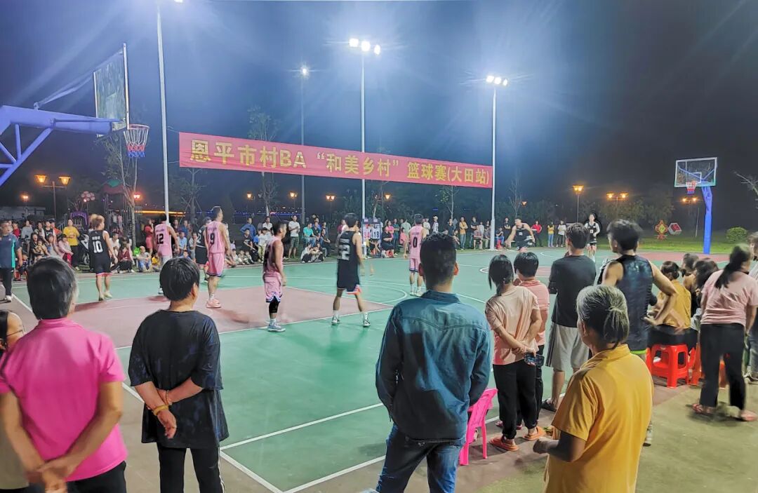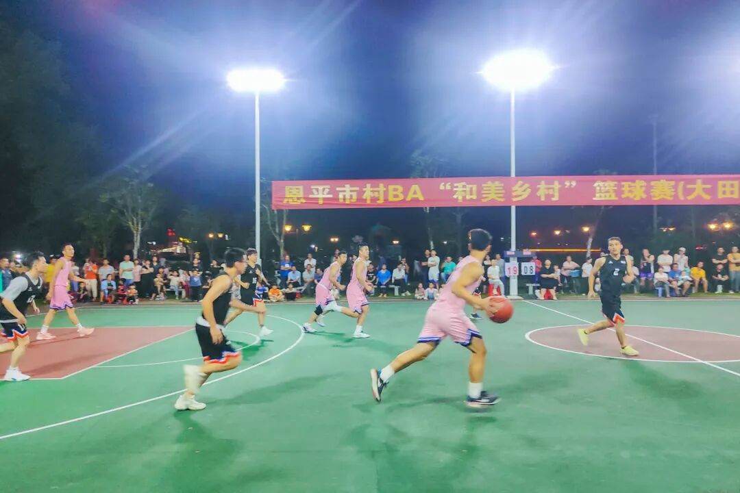 10月26日晚,恩平市“村BA”和美乡村篮球赛第三站(大田站)在大田镇政府篮球场、大田镇江北体育公园篮球场开赛。
