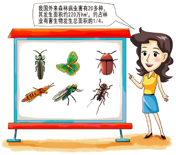 我国外来森林病虫害有二十多种,其发生面积约220万hm2,约占林业有害生物发生总面积的1/4。