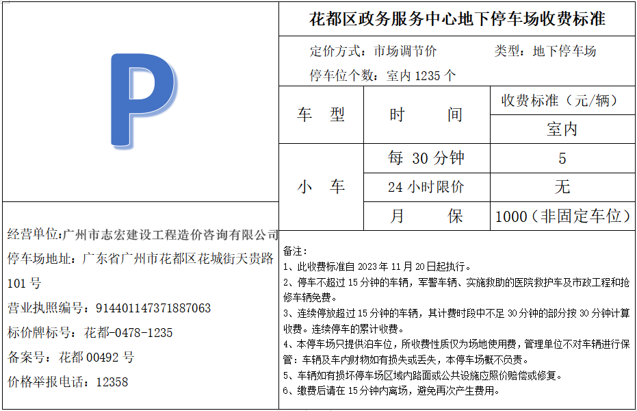 关于广州市花都区政务服务中心地下停车场机动车停放服务收费标准的公示