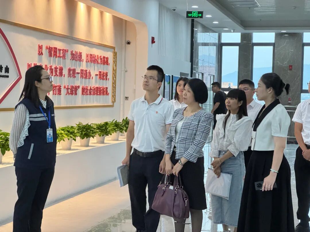 调研组一行实地走访参观了大岭山智慧城市运营中心,听取了大岭山镇数字化建设和网格化基层社会治理的基本情况介绍,了解大岭山“城市智脑”如何运用数字化手段和网格化管理,实现信息数据的汇聚共享及分析应用,提升基层执行效率和治理效能。