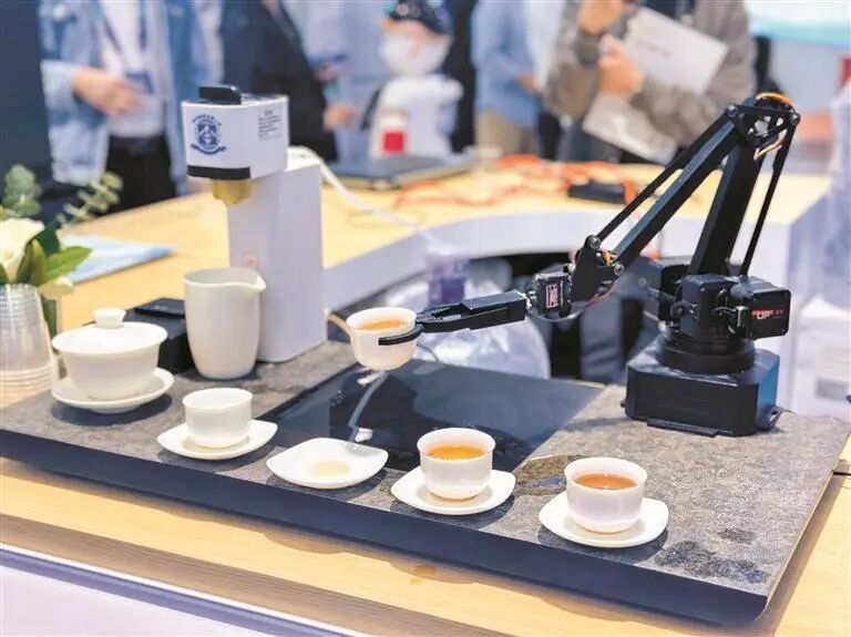 一台由深圳汉诺威国际机器人发展股份有限公司推出的潮汕功夫茶机器人吸引了不少参展者的目光。该机器人将传统茶艺与现代科技相结合,为现场观众带来一场独特的文化体验。该企业负责人表示:“我们希望通过潮汕功夫茶机器人,让更多的人了解和体验传统茶艺的魅力。”