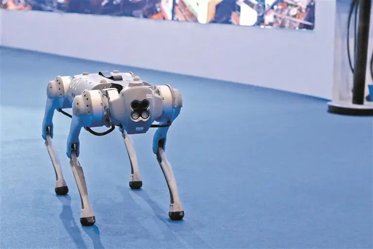 在展区现场,一只行走的“机器狗”成了高人气选手,吸引大家驻足观看,这款救援机器狗,搭载了各种先进的传感器,并具有灵活的移动性,可以完成勘察、通信保障、导航定位、救援现场应急照明等多项任务,为应急救援工作带来便利。