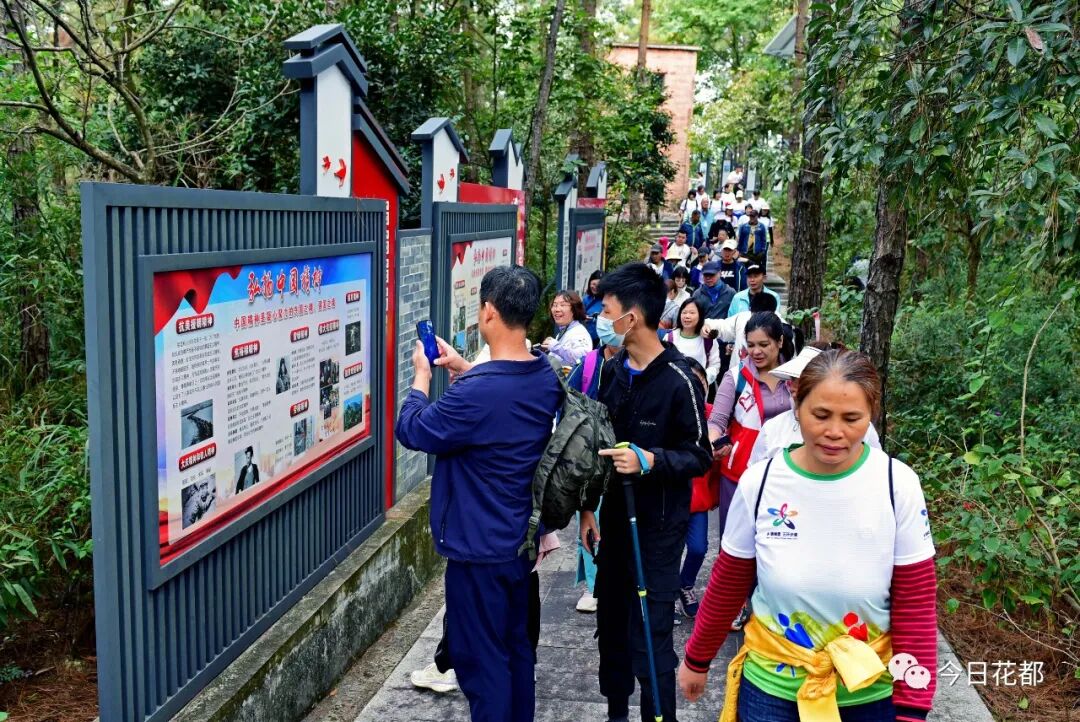 上午8时40分,随着汽笛声鸣响,一众徒步运动爱好者在“全国美丽乡村”——红山村广场依次有序出发,沿途既有风景秀丽的景点,具有客家风情的文明新农村,又有如诗如画的田园风光,清澈见底的潺潺溪水,让参与者在远离城市喧哗的乡村山野溪林中亲近自然,放松身心。不少人还纷纷在铜鼓鼎红色文化园打卡,接受红色教育学习,感受红色历史文化。