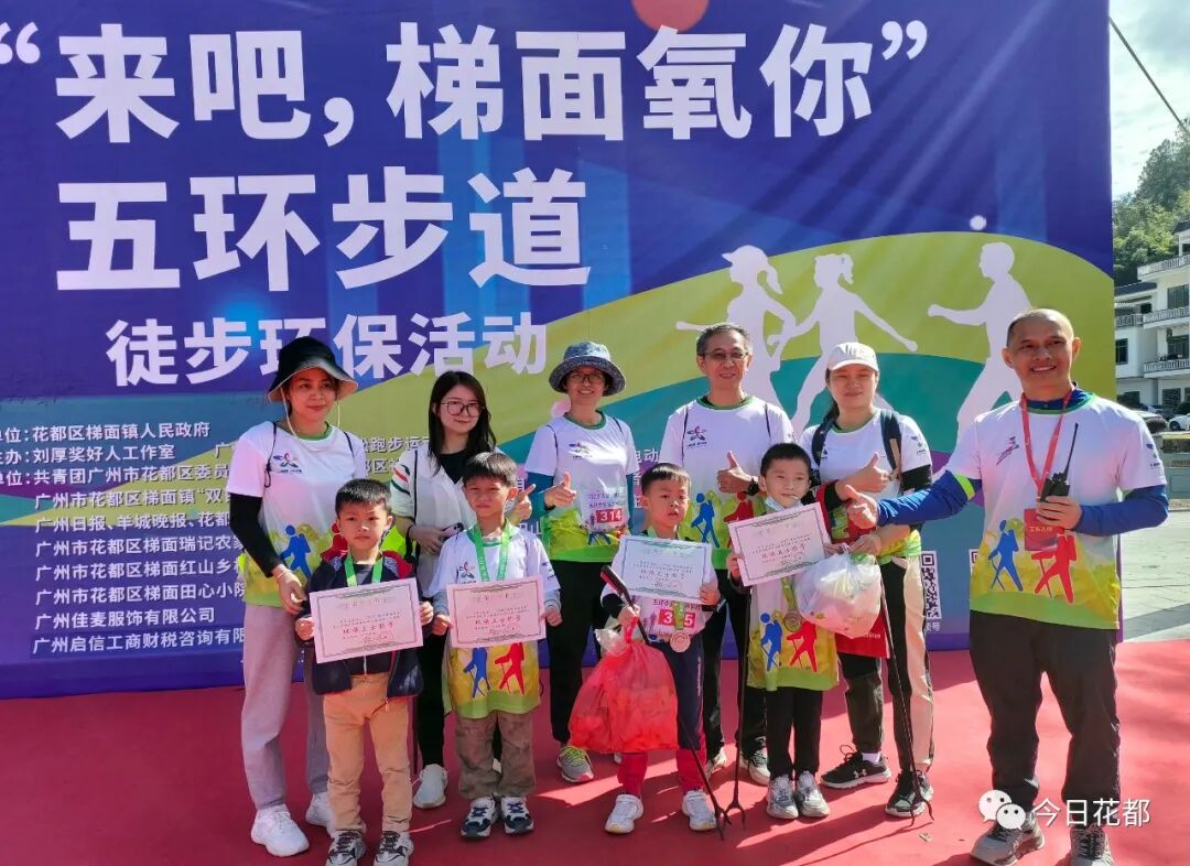 此次徒步活动由梯面镇人民政府指导、刘厚奖好人工作室和广州市花都区马拉松跑步运动协会主办。启动仪式上,梯面镇党委相关负责人表示,醉氧梯面,只负离子不负君,希望大家通过此次活动更好地认识梯面,爱上梯面,体验绿美梯面五环步道的别样魅力。本次活动设置亲子家庭温馨组和大众组两条徒步路线,是五环步道中的花田环、绿水环部分精美路线