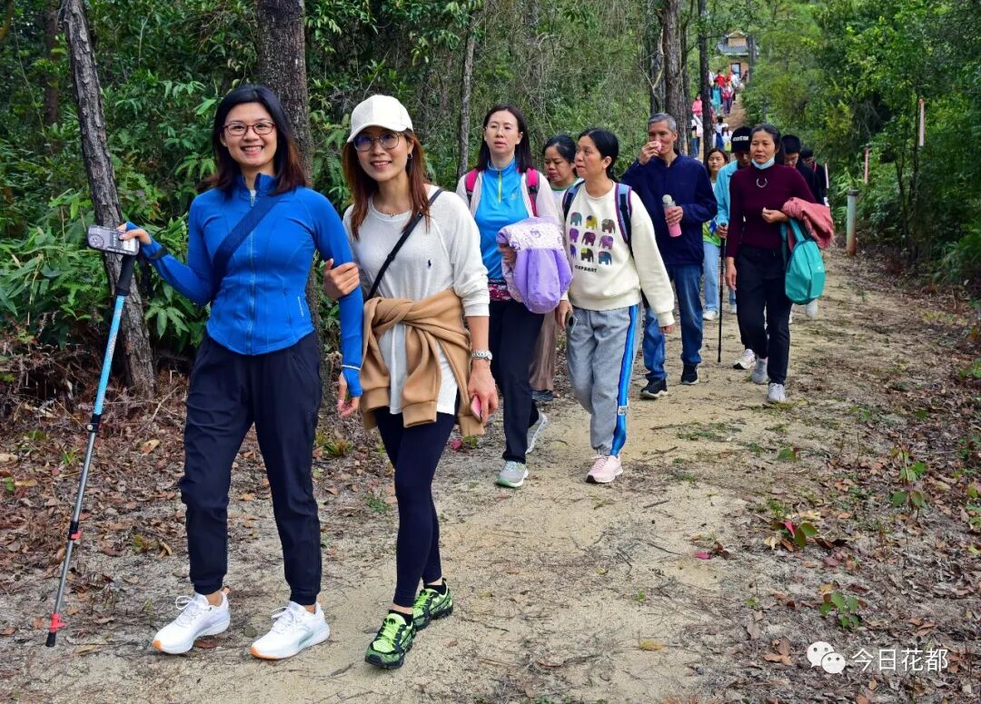 来自珠三角地区的300多名户外运动爱好者在梯面五环步道中的花田环和绿水环中穿行,沐浴着初冬暖阳,尽情感受乡野乐趣,肆意畅享山水秀色