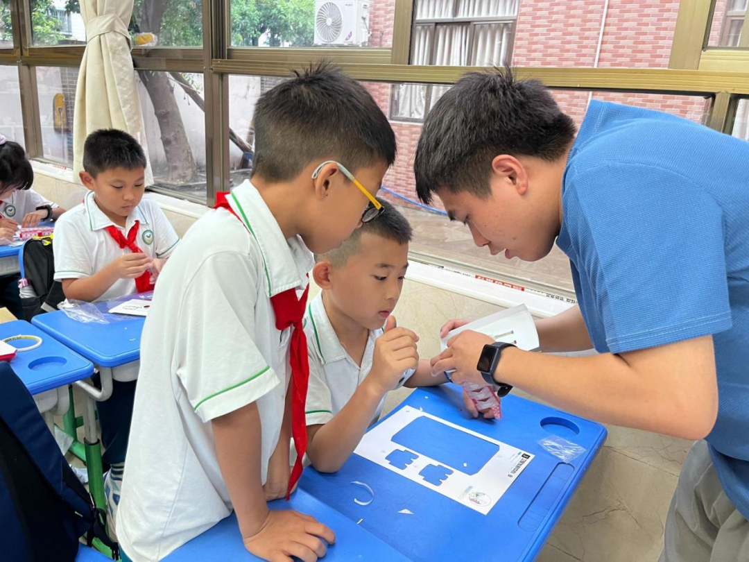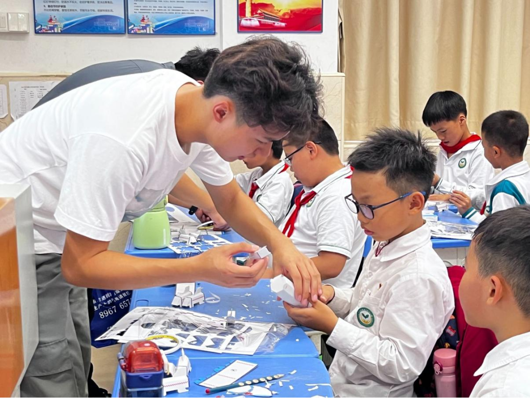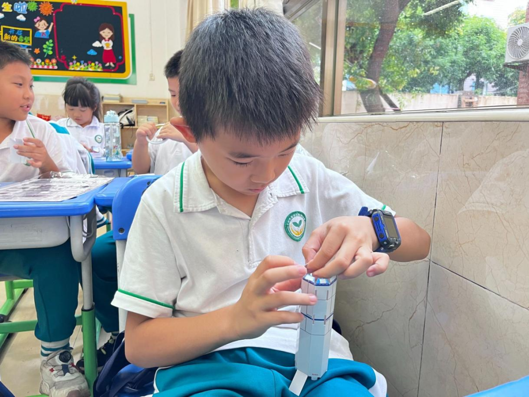 为了帮助同学们更好地理解航天科技,老师们以生动形象的语言讲解运载火箭模型、火箭发射台等一系列有趣的航天工程实践案例,并指导同学们进行各种模型的实操,极大地激发了同学们的好奇心与探索欲。