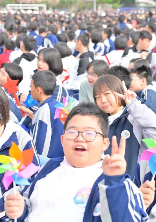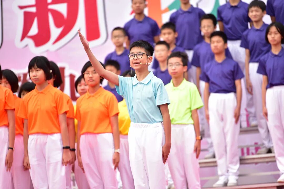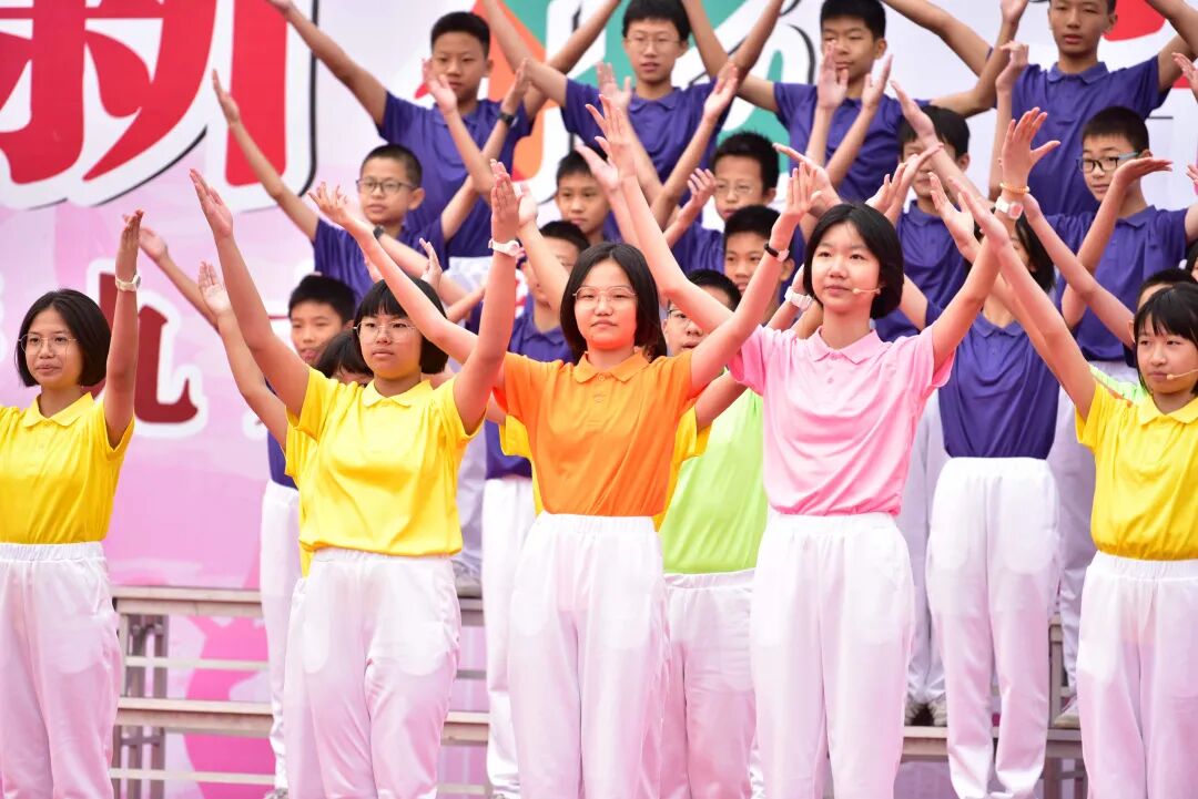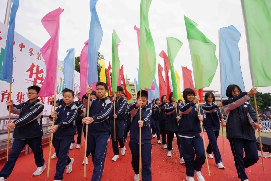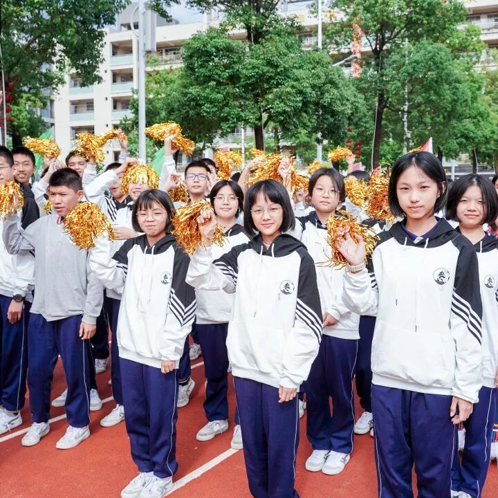 清晨,全校师生欢聚运动场,共迎盛会。大沥镇教育发展中心刘佩诗校长、大沥实验小学李佩球校长、城南小学邝慧珊校长、城区小学叶瑞灯校长等领导莅临我校和大沥中学吴杏甜校长、陈爱玲副校长、黄满洪副校长、黄子梅副校长、沈少霞副校长、吕翠玲副校长、各年级行政主管一起出席了本次盛会,沥中师生以饱满的热情和昂扬的激情抒写了学校“五育并举”的新篇章。