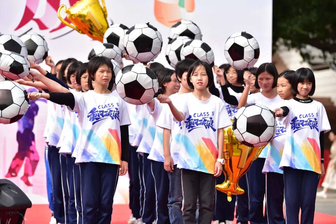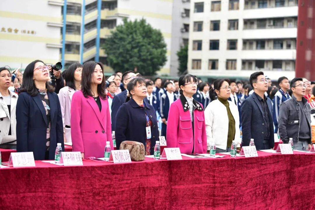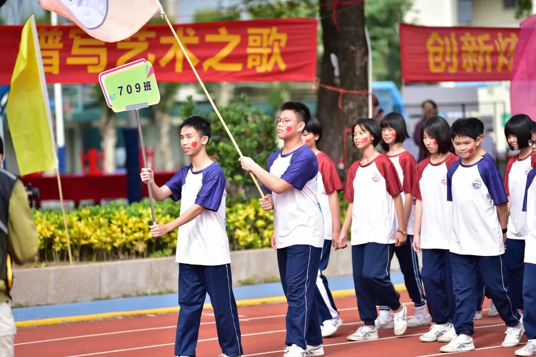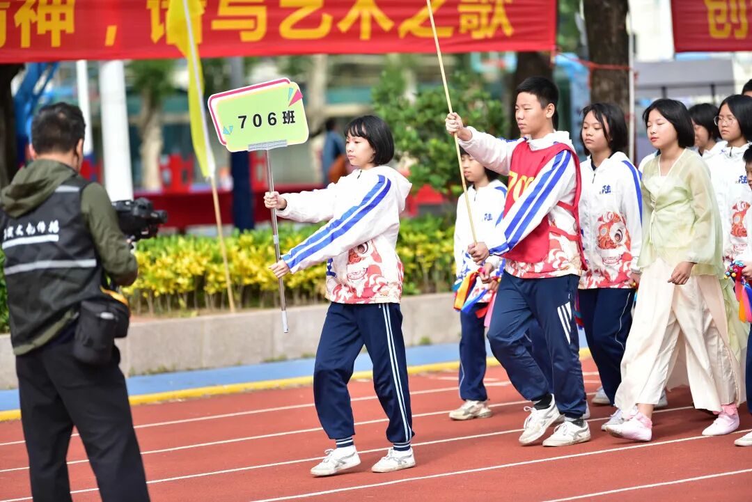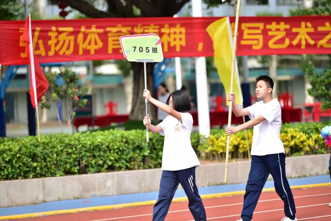 清晨,全校师生欢聚运动场,共迎盛会。大沥镇教育发展中心刘佩诗校长、大沥实验小学李佩球校长、城南小学邝慧珊校长、城区小学叶瑞灯校长等领导莅临我校和大沥中学吴杏甜校长、陈爱玲副校长、黄满洪副校长、黄子梅副校长、沈少霞副校长、吕翠玲副校长、各年级行政主管一起出席了本次盛会,沥中师生以饱满的热情和昂扬的激情抒写了学校“五育并举”的新篇章。