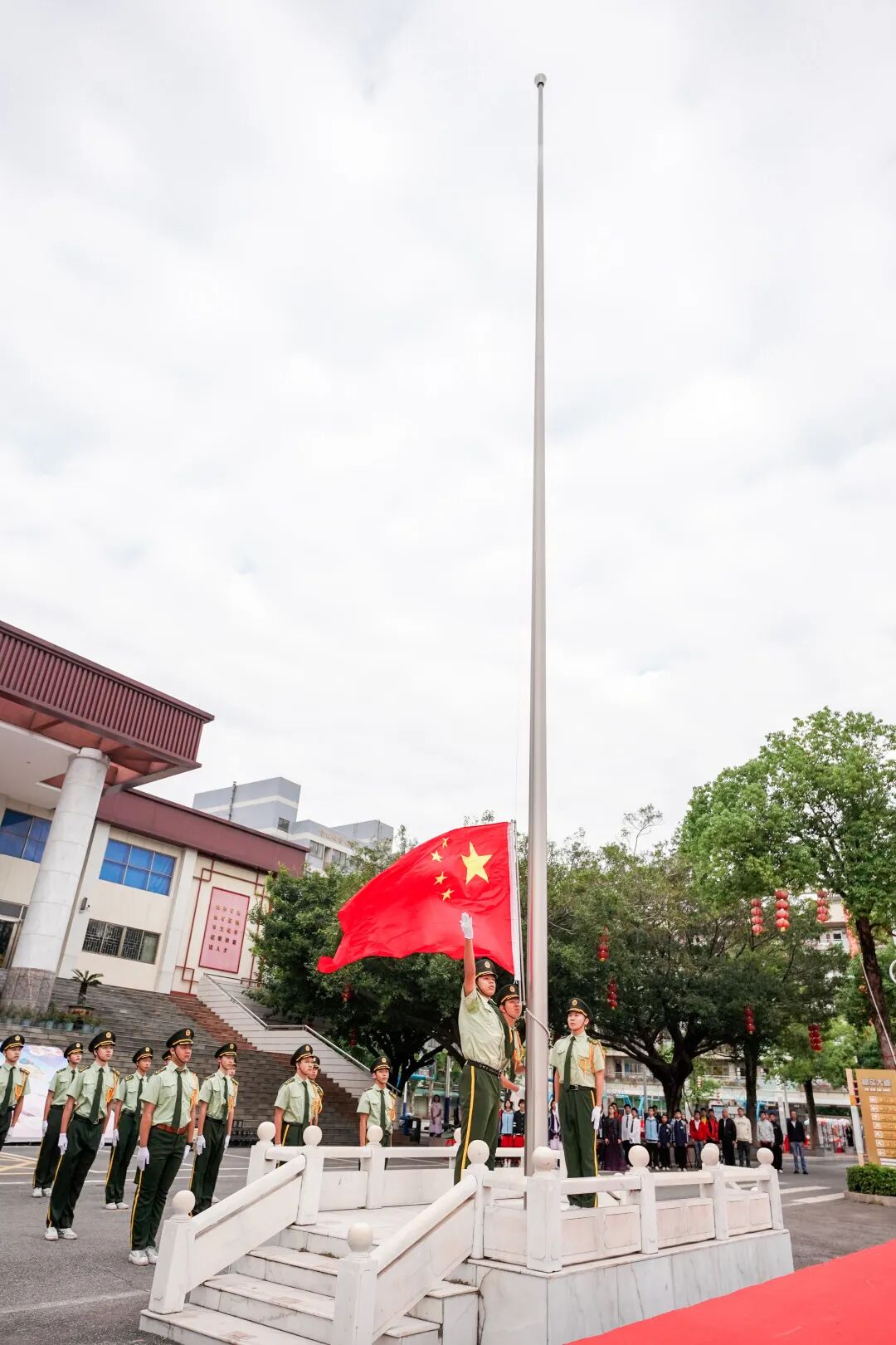 迈着时代的步伐,和着鼓号的节拍,在国旗班的护卫下,鲜艳的五星红旗缓缓进入会场。秋风习习,旗面迎风招展;阳光灿烂,国旗耀眼夺目。火红的国旗仿佛在激励着我们,为中华之崛起而读书!