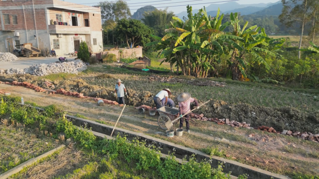在罗定市䓣塘镇平石村,田间地头一片忙碌景象。大型机械正在进行灌区渠道整治、清淤施工作业。党员和群众自发到农田主水渠进行清理疏通,有的清除沟渠杂草,有的打捞枯枝杂叶,有的铲除淤泥,干劲十足,吹响冬修水利的“集结号”。“现在村容村貌大大改变,这里以前杂草丛生,现在水道全部疏通了,作物也提高收成,以后灌溉取水也方便。况且现在机耕路也通了,出入更方便。”群众何叔说。