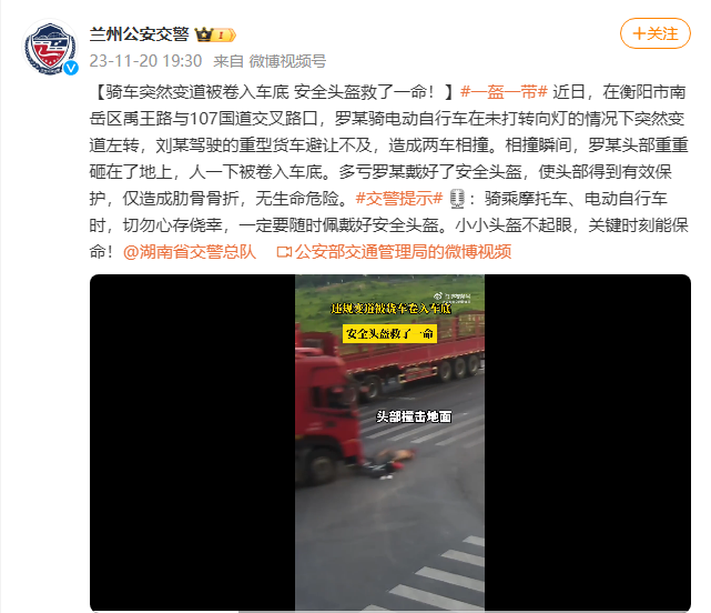 首先让我们来看几个案例,一位男子骑电动自行车出了交通事故,头部撞击地面,幸好戴了头盔,并无生命危险。