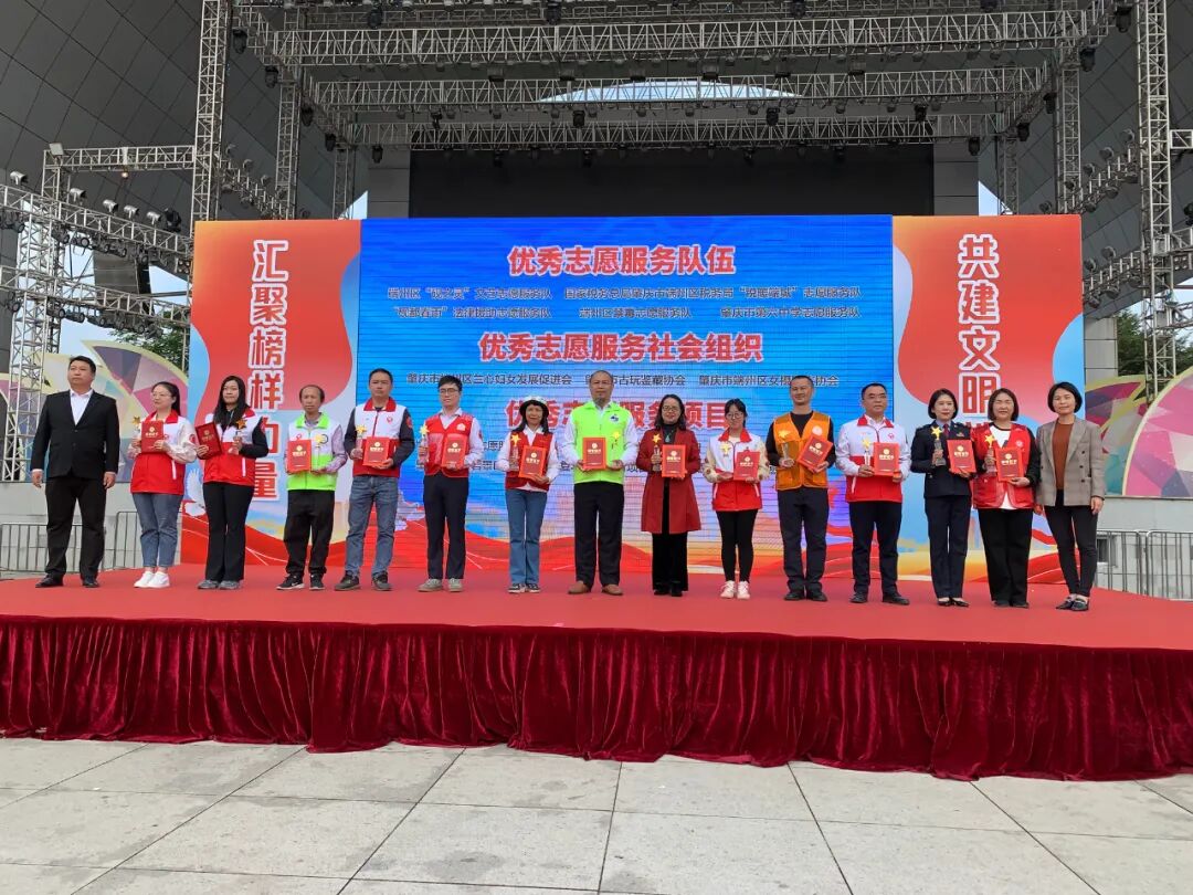 12月3日,端州区举办以“汇聚榜样力量 共建文明端州”为主题的2023年端州区精神文明建设先进典型颁奖仪式暨“12·5国际志愿者日”志愿服务集市活动,大力培育和践行社会主义核心价值观,弘扬“奉献、友爱、互助、进步”的志愿服务精神,助推“百千万工程”。