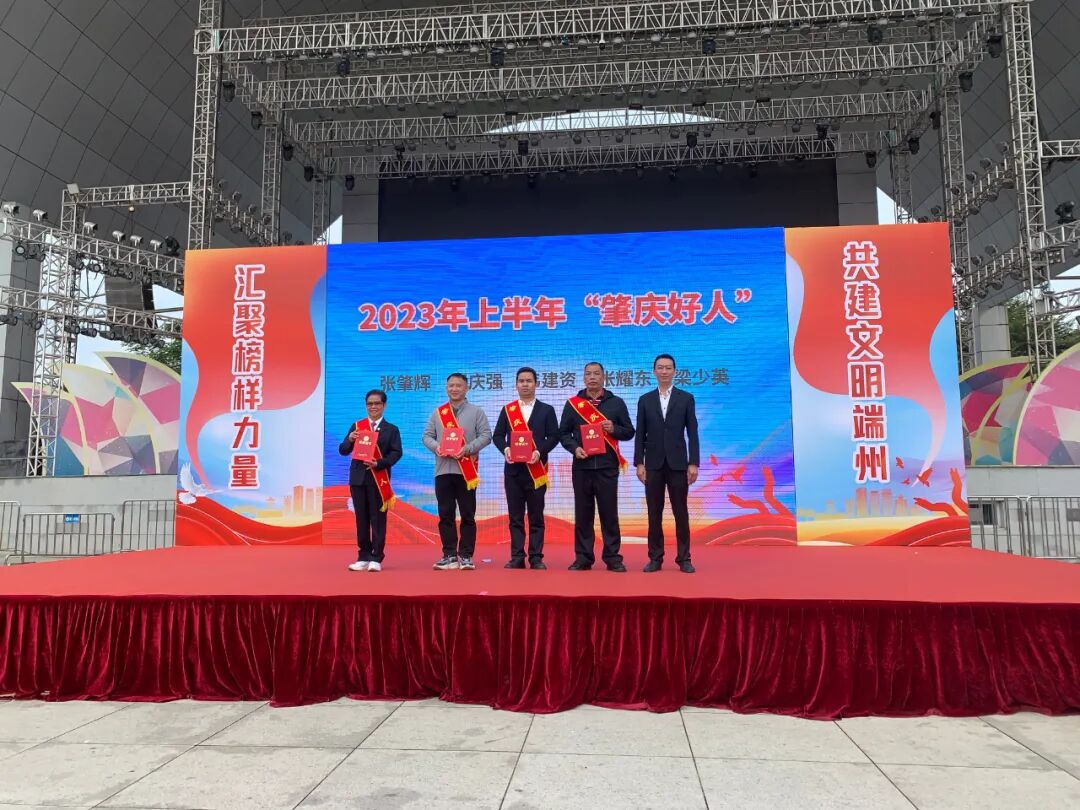 区委常委、宣传部部长黎汉强为获得2023年上半年“肇庆好人”、2022-2023年度端州区文明单位的代表颁奖。