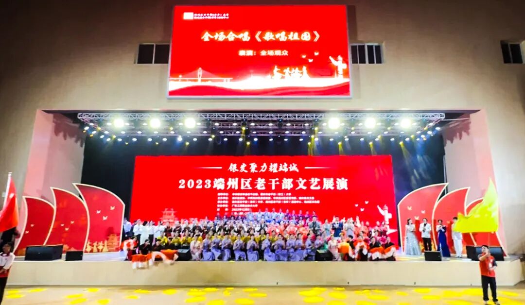 12月5日晚,由肇庆市委老干部局、肇庆市老干部(职工)大学指导,端州区政协、端州区委组织部、端州区委宣传部、端州区关工委主办的“银发聚力耀端城”2023端州区老干部文艺展演在广东工商职业技术大学举办。整场文艺展演精彩、热烈,展现了端州区老干部良好精神风貌,以及老有所学、老有所乐、老有所为的良好社会氛围。