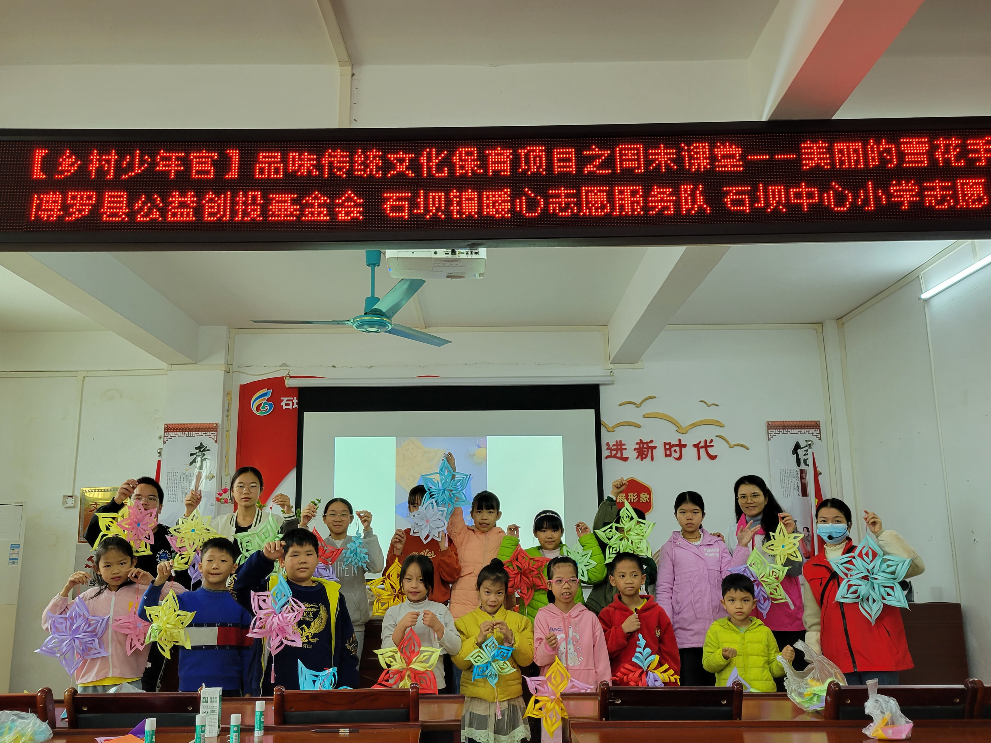12月9日,石坝镇新时代文明实践所、镇党群服务中心、镇暖心志愿者协会联合石坝社区新时代文明实践站、博罗县教育义工团石坝中心小学分队开展了一场以 “美丽的雪花”为主题的手工制作活动。