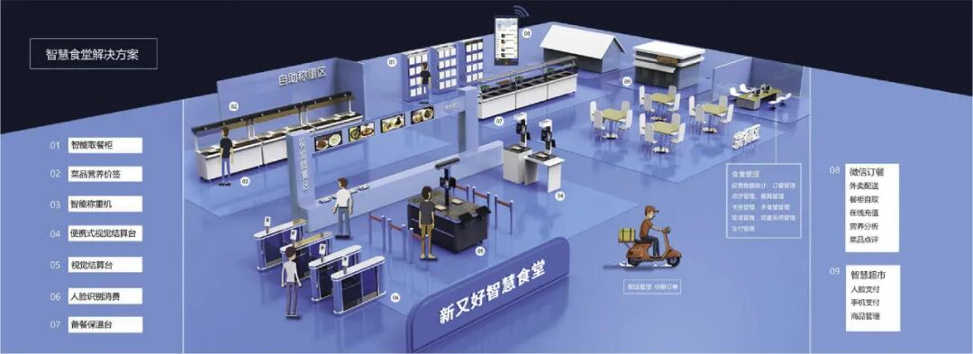 4、智慧食堂。为企业设计食堂打造智慧食堂或承接经营管理,体验升级,开启食堂2.0时代。