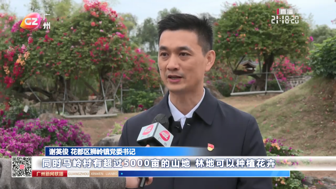 花都区狮岭镇党委书记 谢英俊:“马岭村就在肇花高速马岭出口边上,同时马岭村有超过5000亩的山地、林地可以种植花卉。我们还引进了马岭观花植物园花卉种植项目的企业,有龙头产业,我们有信心把我们的花卉产业做得更好。”