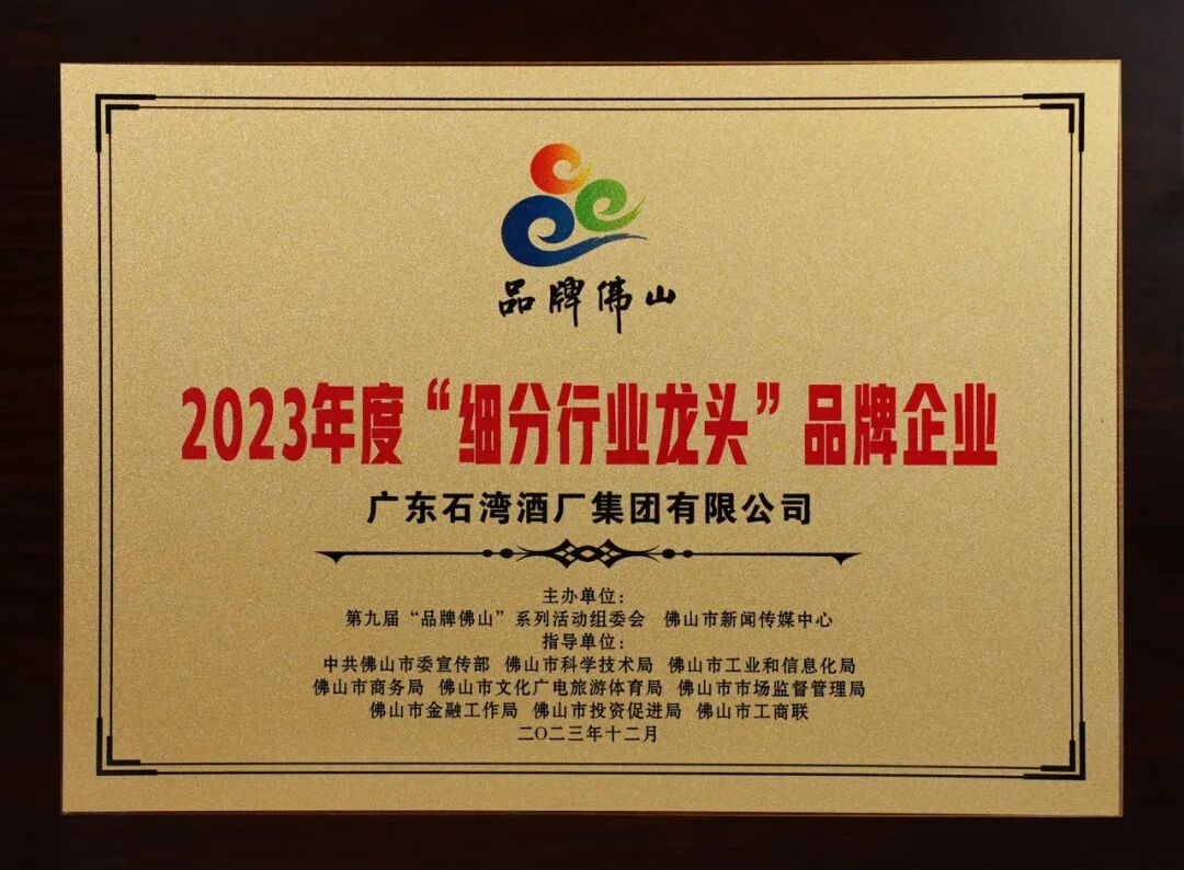 12月15日,“高质量发展 制造业当家”2023佛山经济年会暨制造业高质量发展报告发布会盛大举行,在当晚“品牌之夜”隆重发布的2023年度品牌佛山系列榜单中,广东石湾酒厂集团荣获2023年度“细分行业龙头”品牌企业称号,陈太吉酒庄·甲辰年生肖纪念酒被评为2023年度值得推荐创新产品。
