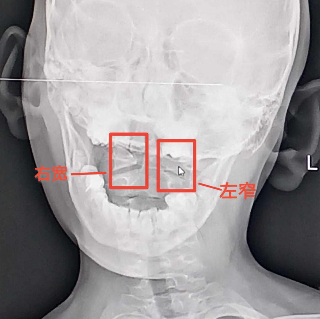 提示:齿状突与寰椎两侧块之间的距离不相等。