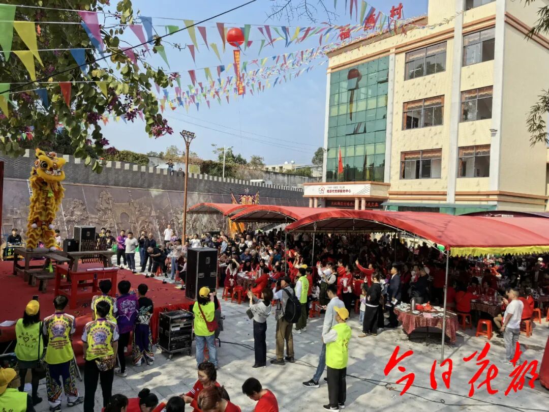 孝亲敬老,欢聚一堂。福源村邀请了全村60岁以上的村民到村委前广场聚餐,大气磅礴的开场舞狮表演《猪笼入水》瞬间点燃了现场氛围,紧接着,福源村舞蹈队、知青团队、外嫁女团队等以歌唱、舞蹈的方式带来了《歌唱祖国》《心雨》《母亲》等精彩节目,外嫁金花们与亲人共品家乡美食共赏文艺表演,现场其乐融融。