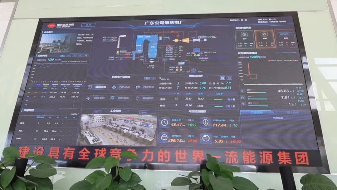 在国能肇庆电厂大楼的首层,从现场大屏幕可以看到电厂的生产运行情况,预计当天发电量将达到1330万千瓦时。