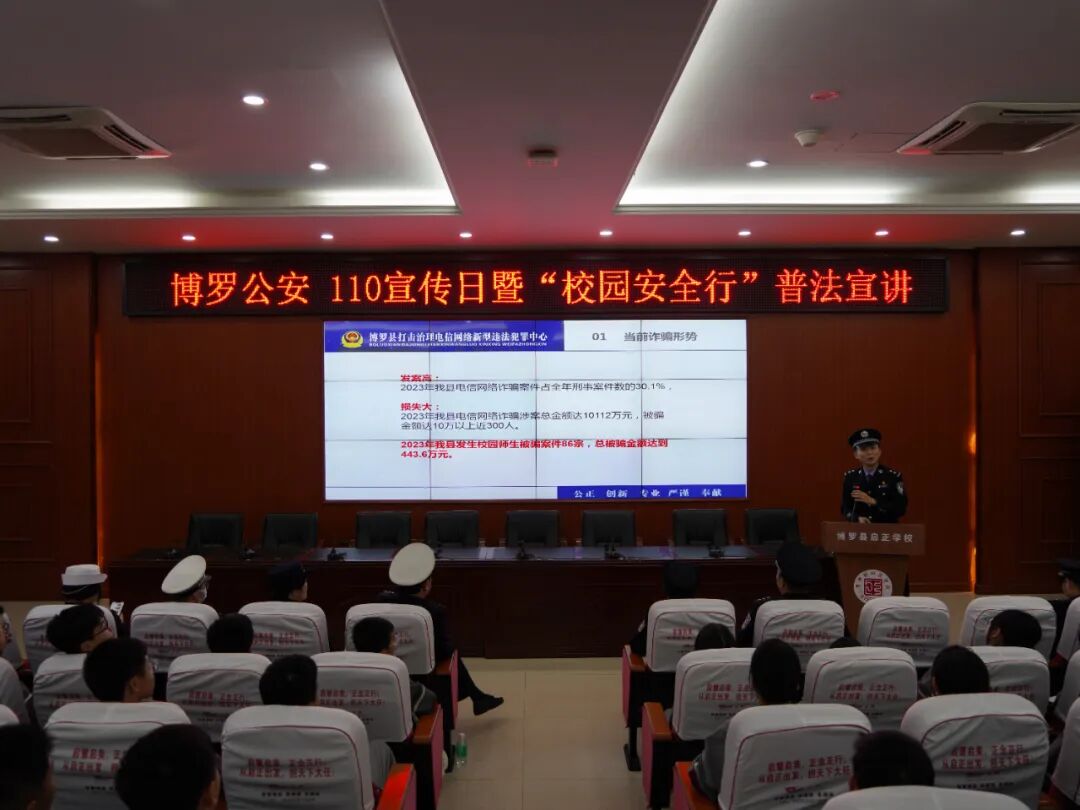 1月9日下午,在第四个中国人民警察节和第38个110宣传日即将到来之际,博罗公安精心组织了一场干货满满的“校园安全行”普法宣讲活动。进一步促进警校联合,强化师生安全防范意识,创建安全和谐的校园环境。