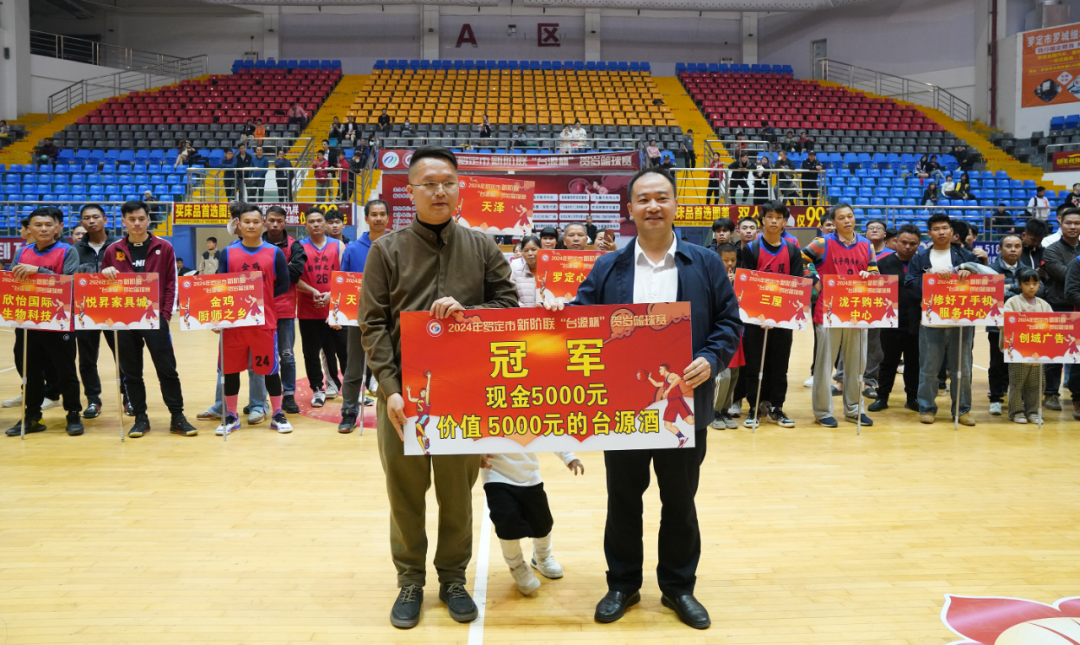 1月12日晚,由中共罗定市委统一战线工作部、罗定市文化广电旅游体育局指导,罗定市新的社会阶层人士联合会主办的2024年罗定市“台源杯”贺岁篮球赛总决赛在市体育馆举行。罗定市委常委、统战部部长刘金光到场观看比赛并为冠军队伍颁奖。